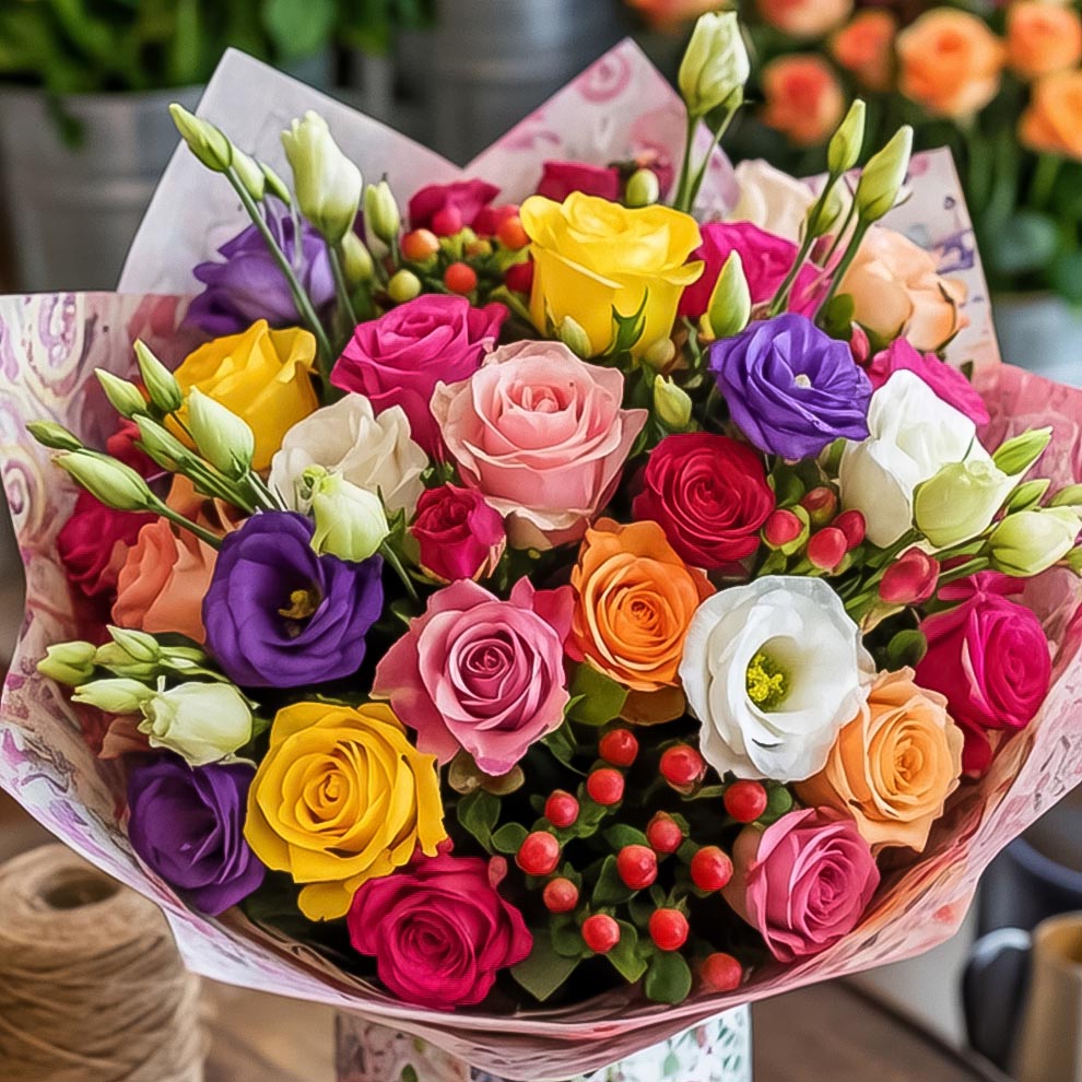 Сочная композиция в теплой гамме выглядит радостно и выразительно. Такой букет отлично подойдет для дня рождения, дружеского поздравления и случая, когда хочется подарить яркие эмоции.