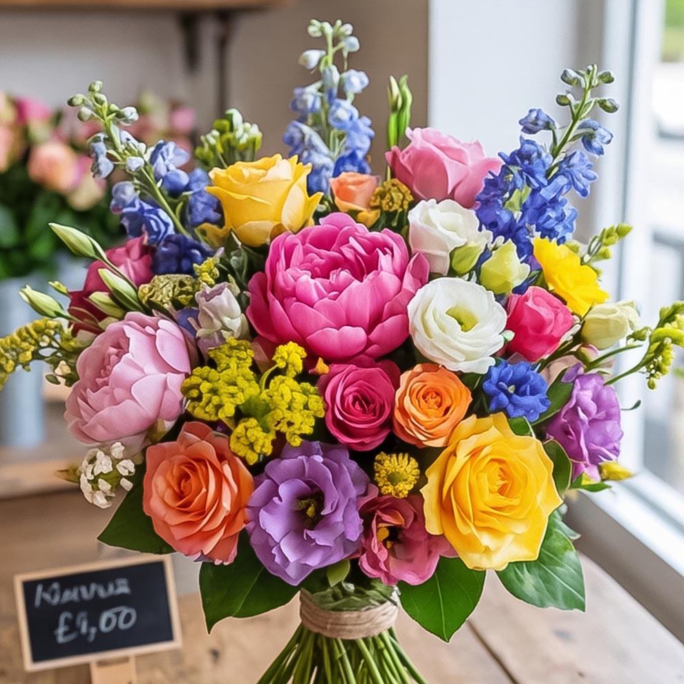 Яркий букет с праздничным настроением для дня рождения, поздравления и приятного сюрприза.